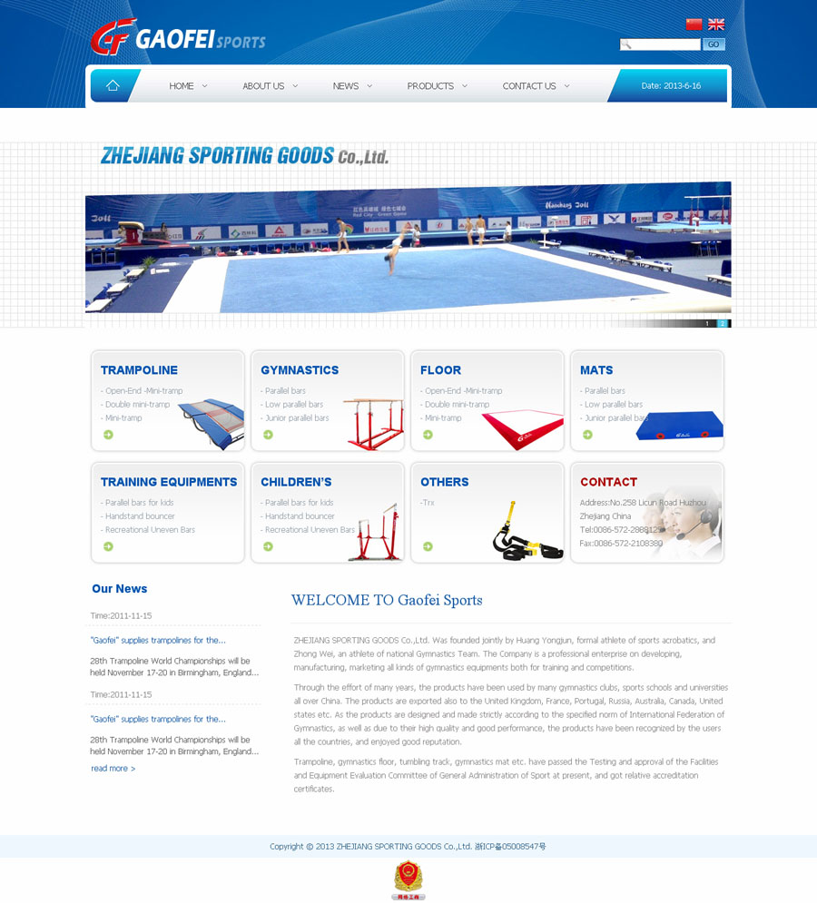 浙江金耐斯體育用品有限公司(原湖州市高飛體育用品有限公司)是由技巧運動世界冠軍黃擁軍和原國家隊體操運動員鐘蔚共同創(chuàng)辦的生產(chǎn)體操類運動項目比賽和訓(xùn)練器械的專業(yè)公司,公司集研發(fā)、生產(chǎn)、銷售、服務(wù)于一體,多年來致力于為運動隊提供優(yōu)質(zhì)的器械和服務(wù),已成為國內(nèi)為數(shù)不多的專業(yè)公司中發(fā)展最快的企 業(yè)。我公司是外商獨資企業(yè),注冊資金130萬美元,在湖州鳳凰經(jīng)濟開發(fā)區(qū)建有10000多平方米廠區(qū),員工80名。總經(jīng)理