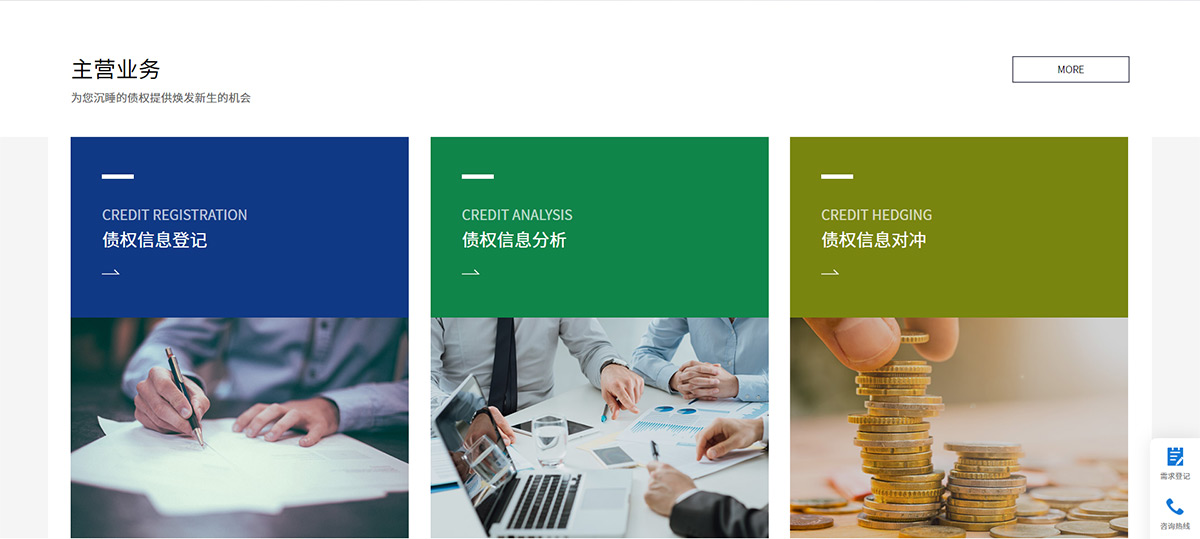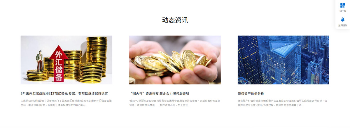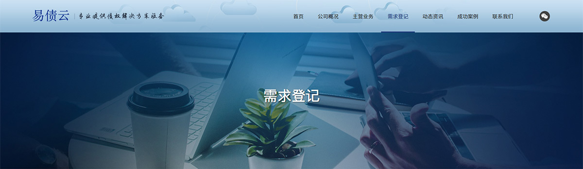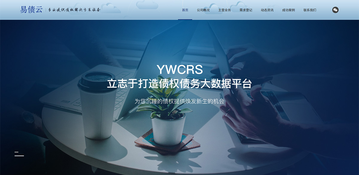 官網(wǎng)建設(shè)需要傳達(dá)出“云務(wù)科技立志于打造債權(quán)債務(wù)大數(shù)據(jù)平臺”的企業(yè)愿景,所以官網(wǎng)形象與功能需要并重,塑造出大氣、穩(wěn)重的企業(yè)形象格調(diào)。僅僅只是靠單純的文字內(nèi)容已經(jīng)是滿足不了客戶,也吸引不了客戶了,所以我們運(yùn)用了大banner來展示畫面,文字加圖片可以讓瀏覽者一進(jìn) 易債云的網(wǎng)站就能感受到濃厚的商務(wù)氣息,加深對自身品牌的理解。為了良好的引導(dǎo)瀏覽者完整獲取信息并得到準(zhǔn)確、完整、清晰的內(nèi)容,網(wǎng)站 導(dǎo)航設(shè)計我們非常的簡單,架構(gòu)清晰,在首頁內(nèi)容結(jié)構(gòu)上將主營業(yè)務(wù),動態(tài)資訊,公司概況的應(yīng)用入口依次展示。