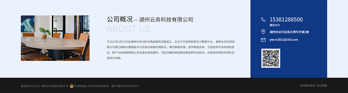湖州云務(wù)科技有限公司于2021年2月23日在湖州市吳興區(qū)市場監(jiān)管局注冊成立,立志于打造債權(quán)債務(wù)大數(shù)據(jù)平臺。湖州云務(wù)科技有限公司通過網(wǎng)絡(luò)大數(shù)據(jù)技術(shù)與傳統(tǒng)法律服務(wù)相結(jié)合,聚合數(shù)據(jù)資源,提供數(shù)據(jù)咨詢,為您提供專業(yè)的債權(quán)登記、財產(chǎn)分析和收購轉(zhuǎn)讓等全鏈條債權(quán)服務(wù),為您沉睡的債權(quán)提供煥發(fā)新生的機(jī)會,并使您的債權(quán)實(shí)現(xiàn)在這里成為可能。
